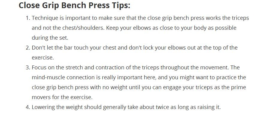CLOSE GRIP BENCH PRESS