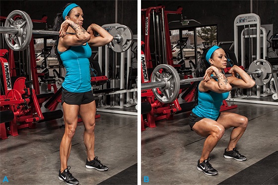 One major mistake people make when they squat is rounding their necks, or looking down at the ground. The spinal alignment is automatically thrown off, which makes the squat a very dangerous exercise, especially if you are using a lot of weight. Sometimes I pick a spot on the wall that’s in line with my eyes as I am standing straight, then as I squat down, I keep my eyes on that spot. My head is automatically in the correct position.